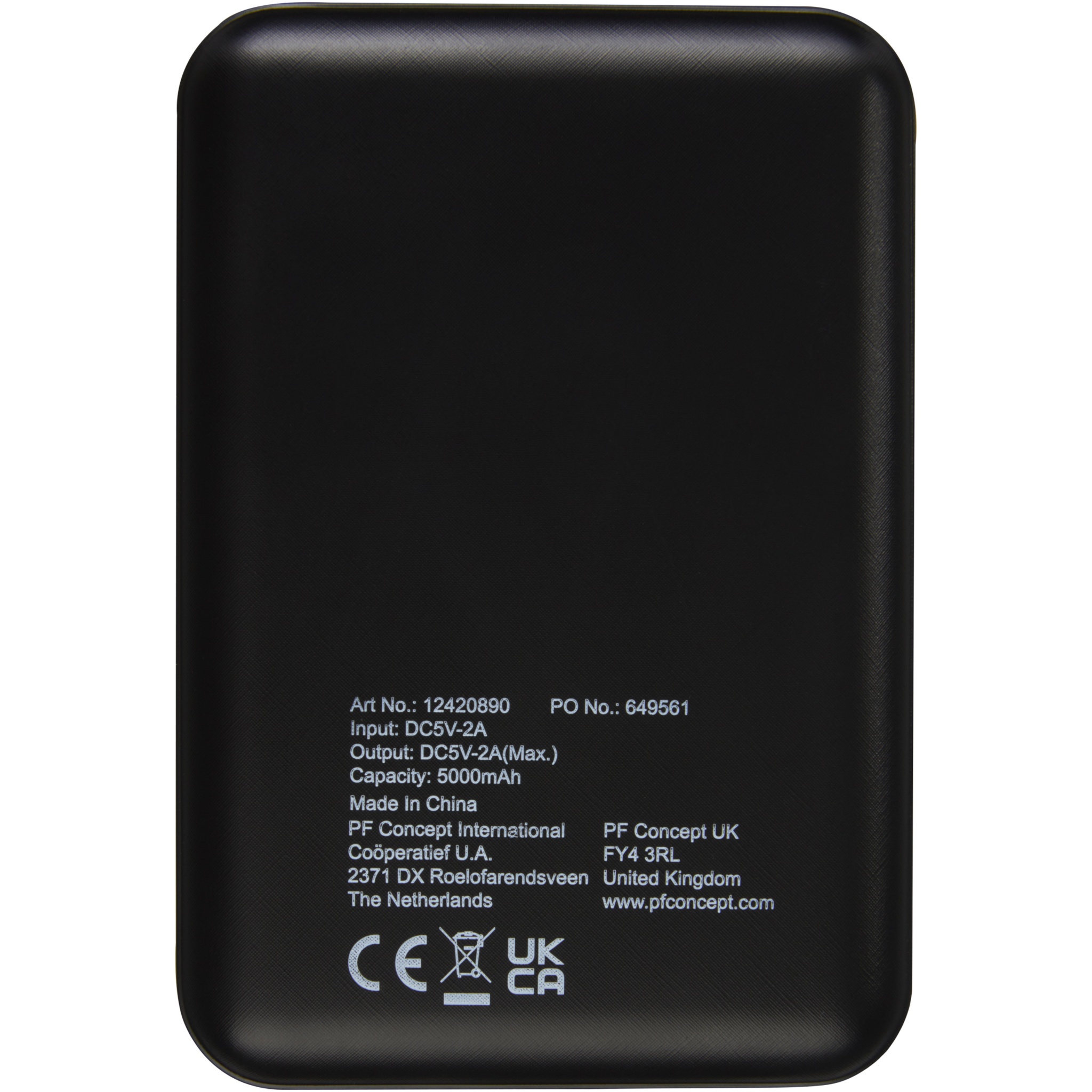Platt och slitstark powerbank med 5 000 mAh polymerbatteri. Kan lasergraveras på fronden främre panelen, vilket kommer att lysa upp logotypen när din powerbank slås på eller används. Utgång 5 V/2 A Ingång: 5 V/2 A Ingen tillbehörskabel tillhandahålls ur hållbarhetsändamål.