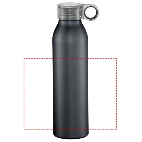 Snygg och lätt, det är Grom 650 ml sportflaska i aluminium i ett nötskal. Det genomskinliga skruvlocket är spilltåligt och har en ögla med en färgpop-funktion som gör det enkelt att bära den. Den matta, metalliska finishen ger flaskan ett elegant utseende. Oavsett vad det finns att fira kommer Grom-flaskan säkert att glädja varje mottagare.