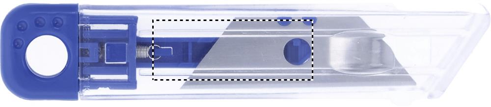 Praktisk infällbar kartongkniv i transparent finish och färgad stomme.