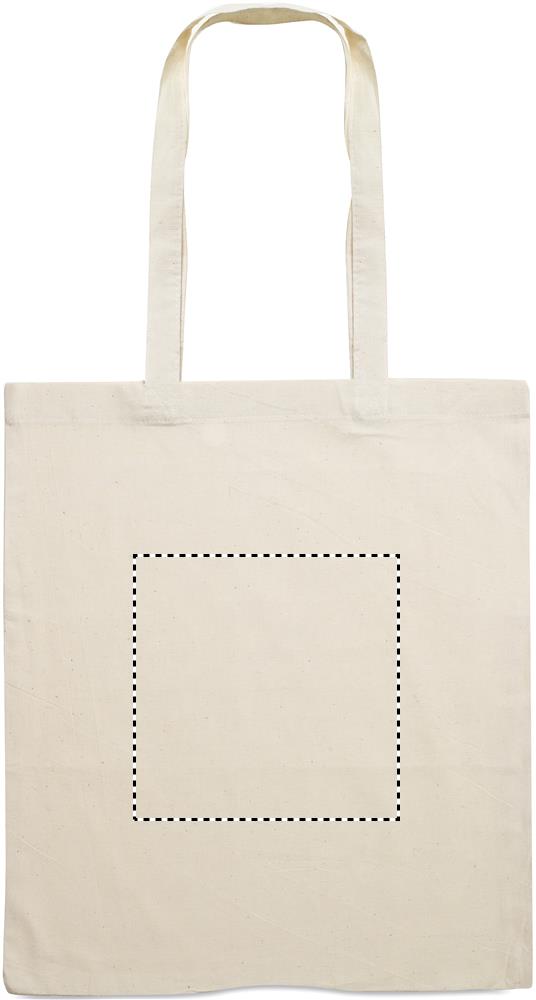 Kasse i ekologisk bomull med långa handtag. 180 gr/m². Tillverkad i EU