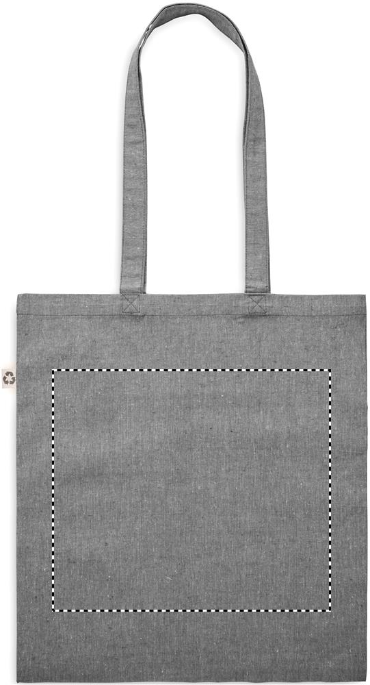 Tygkassae i återvunnen bomull (80 % återvunnen bomull, 20 % bomull) med långa handtag. 140 gr/m².