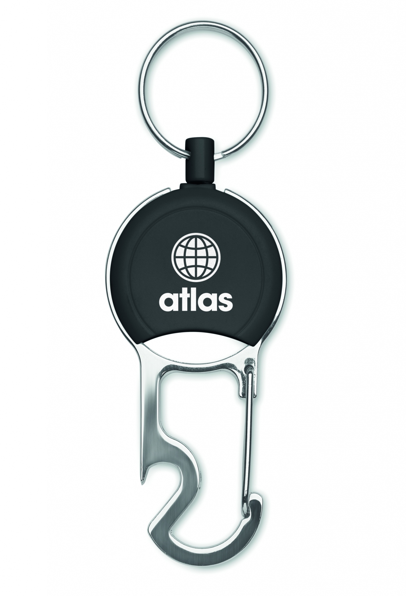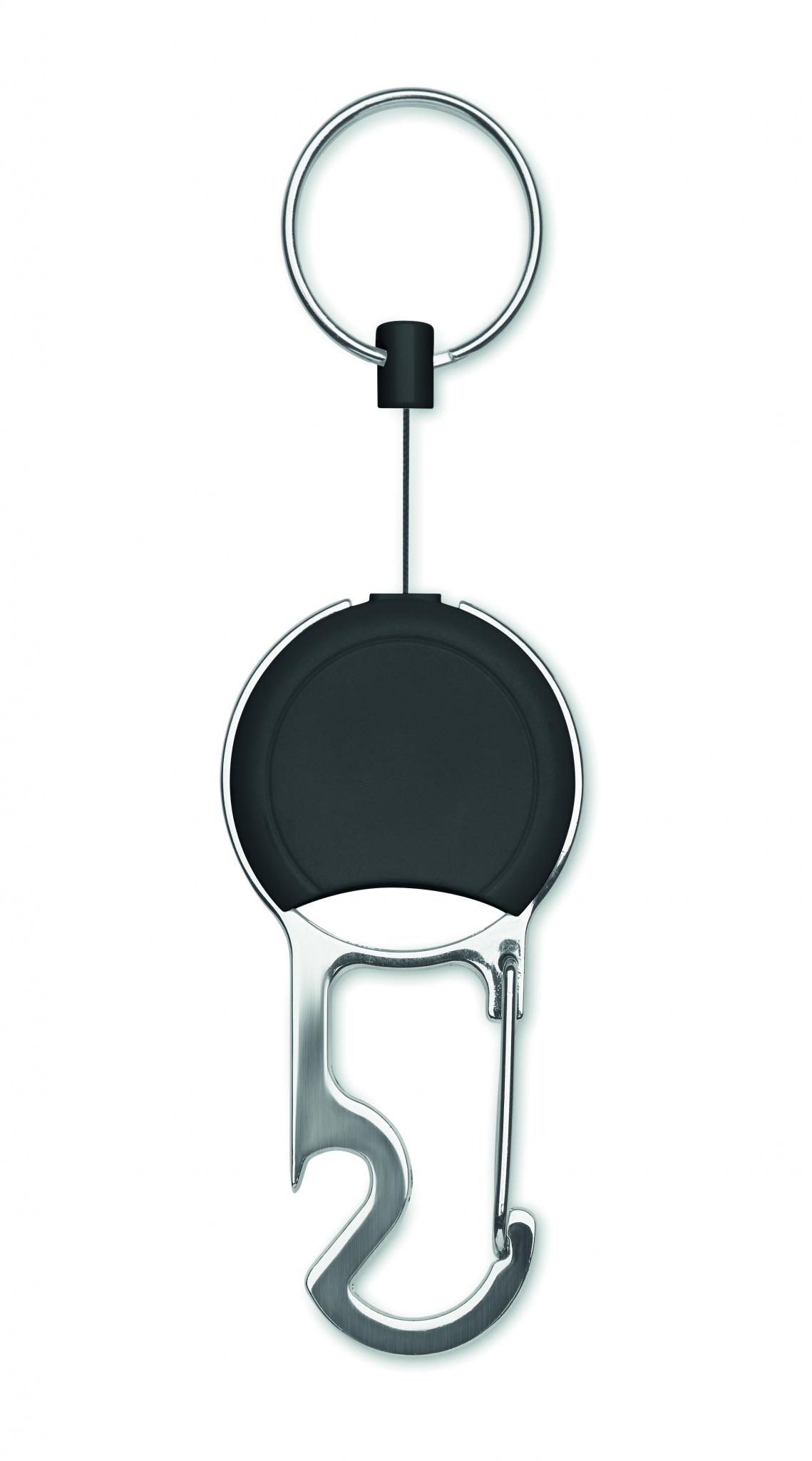 Korthållare med jojofunktion i ABS med clips, nyckelring och flasköppnare.