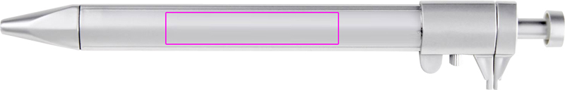 Kulspetspenna av plast med linjal och skjutmått. Vi trycker din logotyp mitt emot skalan.