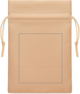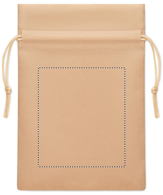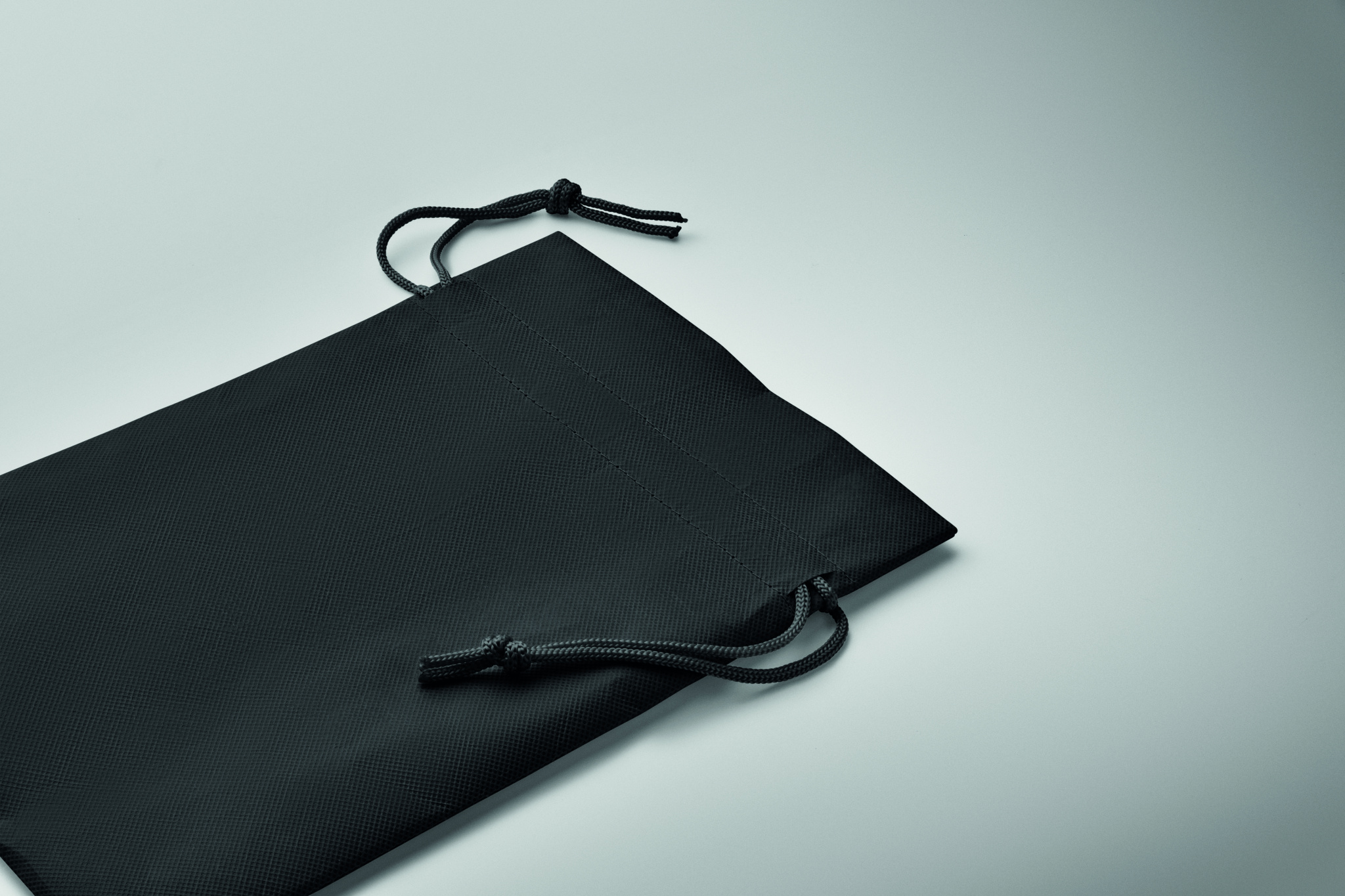 Liten presentpåse med dragsko i RPET non-woven 80 gr/m². Storlek ca 20x30 cm.