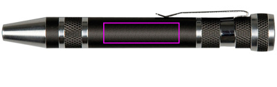 Skruvmejselsats i metall med åtta olika bits. Vi applicerar ditt reklambudskap på skaftet med hjälp av lasergravering.