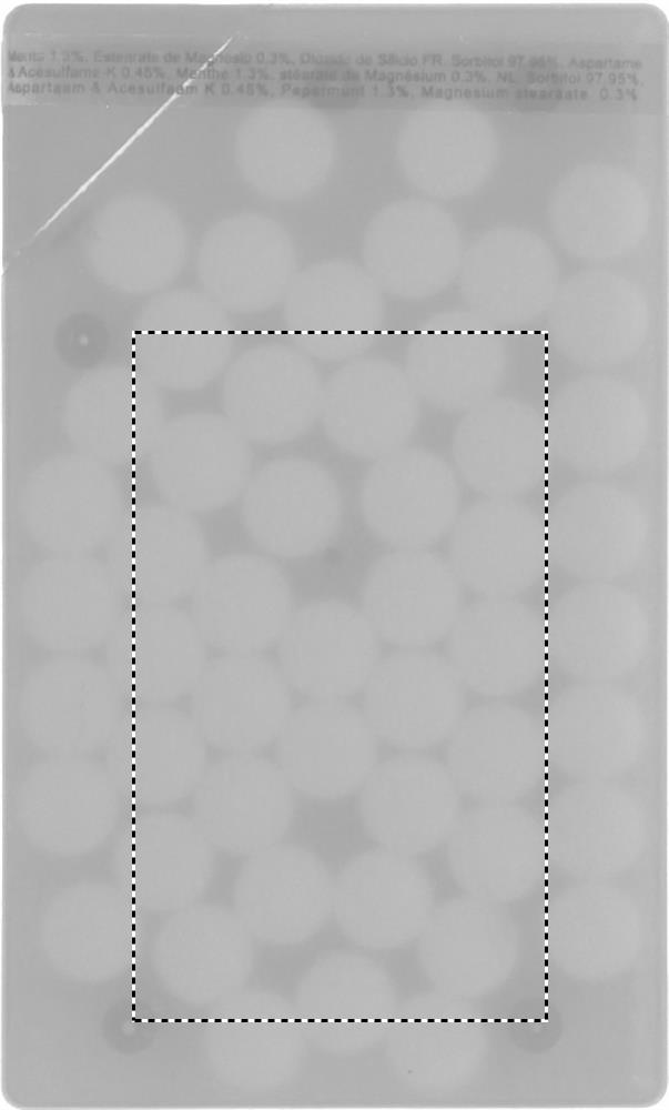Minttabletter i en behållare lika stort som ett kreditkort. Innehåller 8 gram minttabletter.