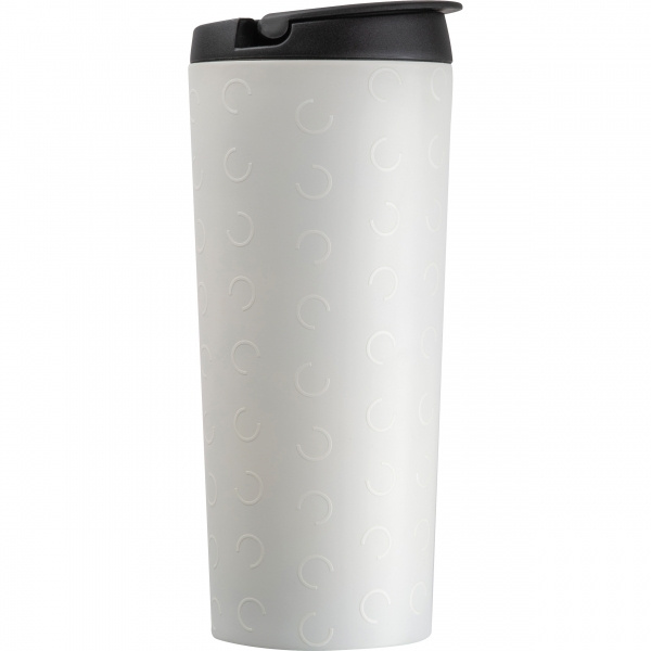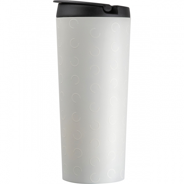 MoLu drickskopp med en hästskologotyp – en snygg höjdpunkt gjord av högkvalitativt rostfritt stål med en subtil ton-i-ton-gravering. Håller drycker varma eller kalla i upp till 18 timmar. Med en kapacitet på 450 ml är den perfekt för användning på språng.