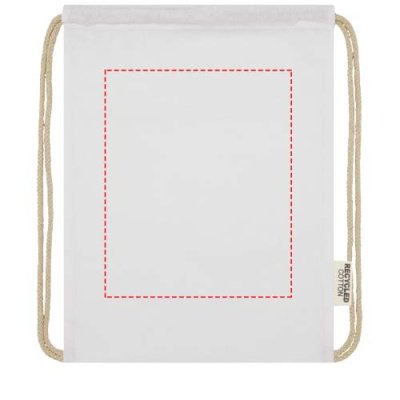 Oregon väska med dragsko tillverkad av 100 % GRS-certifierad återvunnen bomull är lätt att dela ut som en gåva för att marknadsföra ditt varumärke eller din marknadsföringskampanj. Denna lätta väska är budgetvänlig, lätt att bära på ryggen eller axeln och erbjuder tillräckligt med utrymme för att lägga till en logotyp eller andra meddelanden. Dragskon gör den lätt att öppna och stänga, och bomullsmaterialet på 140 g/m² är starkt och tåligt. Stort huvudfack med stängning genom bomullsdragsko. Klarar upp till 5 kg vikt.