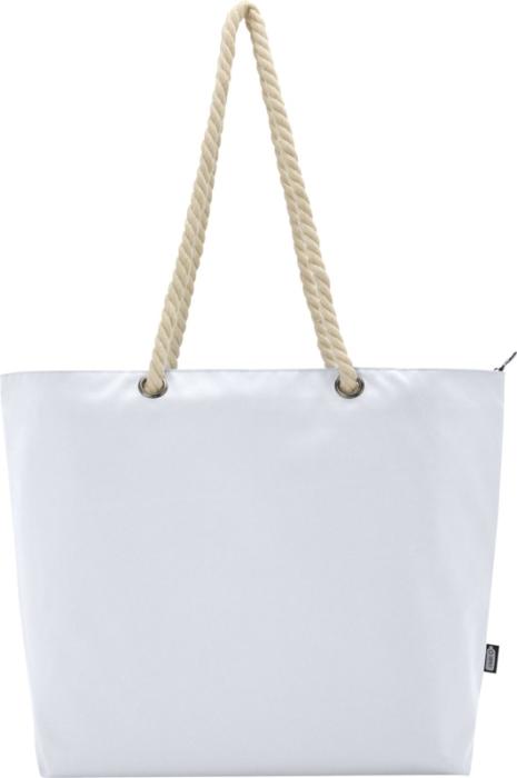 Den kylande tygväskan Panama är tillverkad av GRS-certifierad återvunnen polyester och har ett stort huvudfack med dragkedja samt handtag av aluminiumfolie och bomullssnöre av hög kvalitet. Passar för olika aktiviteter som att handla mat eller för en dag på stranden eller i parken. Volymkapacitet: 23 liter. Klarar upp till 10 kg vikt. PVC-fri.