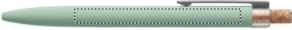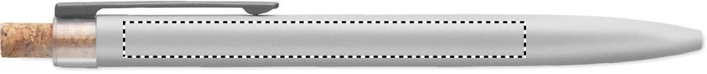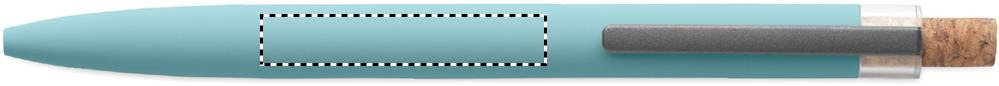 Penna i återvunnen aluminium med korkdetaljerad knapp och metallklämma. Blått bläck.