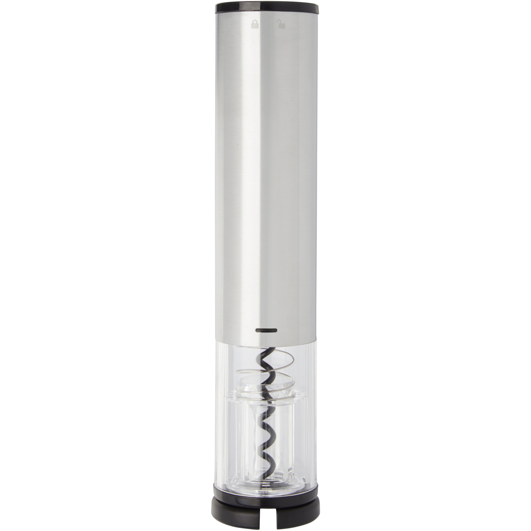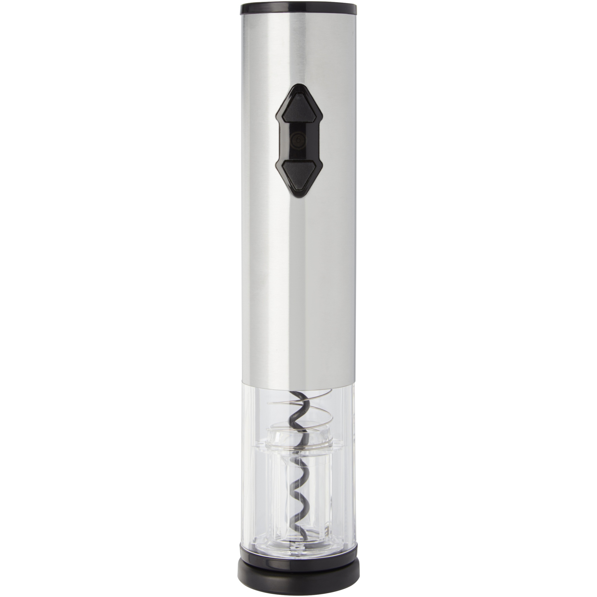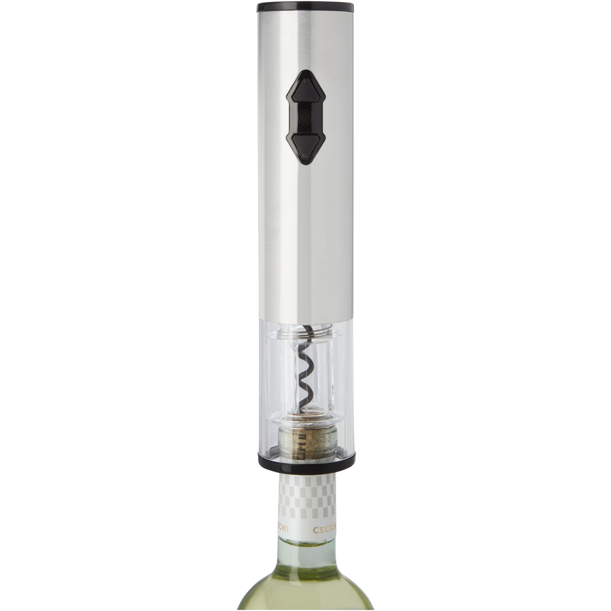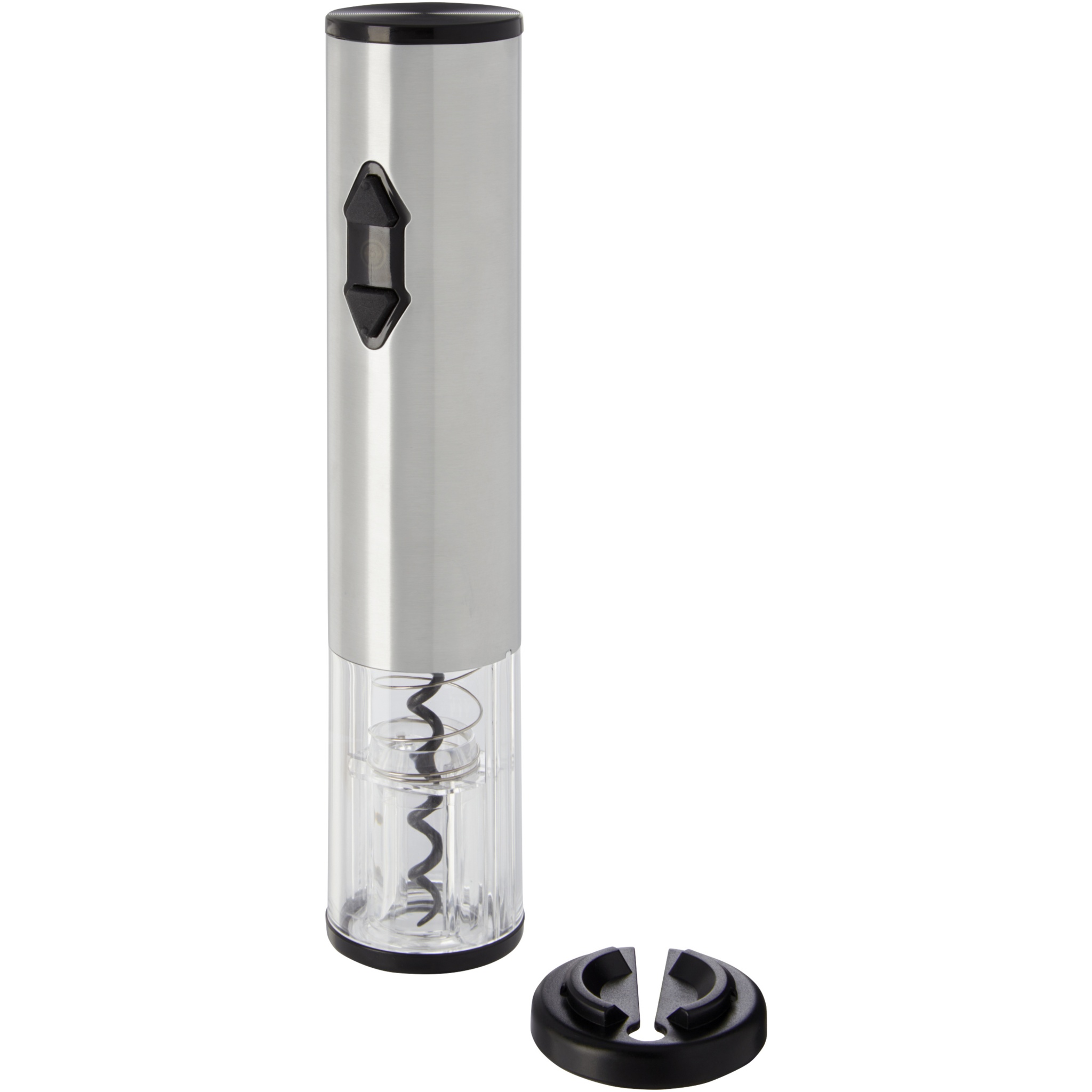 Elektrisk vinöppnare i kombination med en folieskärare, en hällare och en propp. Den använder 4 AA-batterier (ingår ej).