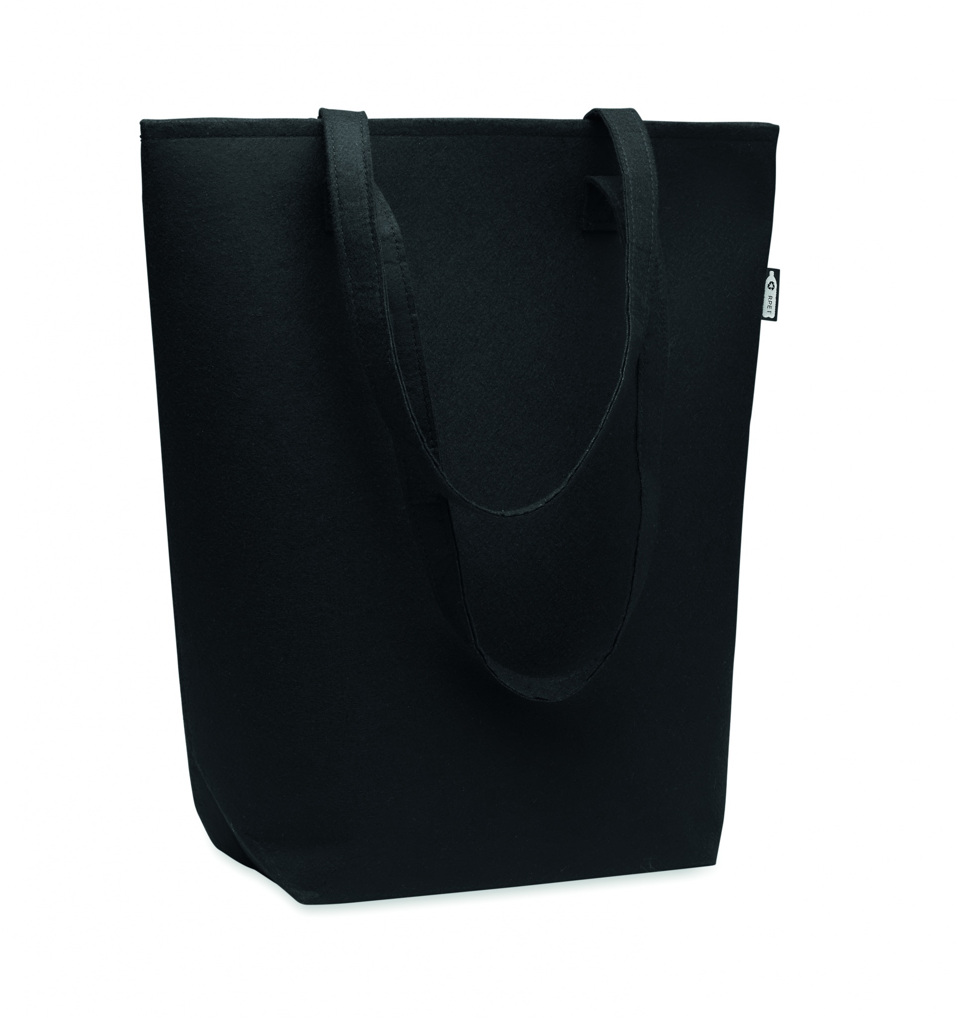 Shoppingkasse i RPET-filt med långa handtag. Filtens tjocklek: 1 mm.