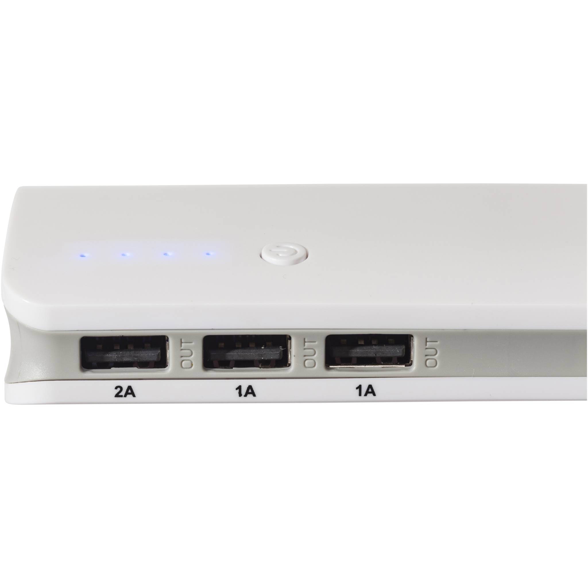 Spare powerbank har ett 10000 mAh Grade A litiumjonbatteri och en ficklampa som kan användas på mörka platser eller på natten. Ladda upp till tre enheter samtidigt med en maxeffekt på 5V/2.1A (utgång 1: 5V/1A, utgång 2: 5V/1A och utgång 3: 5V/2.1A). De fyra blå LED-indikatorerna visar powerbankens återstående batterikapacitet. Inklusive USB- och micro-USB laddningskabel. Avenue presentförpackning.
