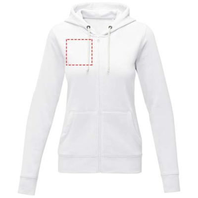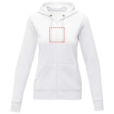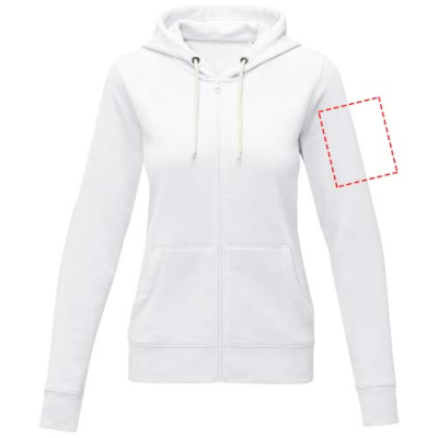 Theron huvtröja med hel dragkedja för DAMER - där stil möter komfort i perfekt harmoni. Den här huvtröjan är en sann förkroppsligande av klassisk design. Dessutom finns det möjlighet att göra personliga märkningar eller anpassningar på insidan av huvtröjan. En känguruficka kombinerar bekvämlighet med modern estetik. Den plattstickade ribbade nederkanten och muddarna garanterar en säker passform medan den borstade insidan maximerar mjukheten. Tyget på 240 g/m², en blandning av bomull och polyester, lovar värme och hållbarhet. Lyft din garderob med Theron-hoodien med hel dragkedja. Den här huvtröjan är designad med en figurnära passform för en feminin look.