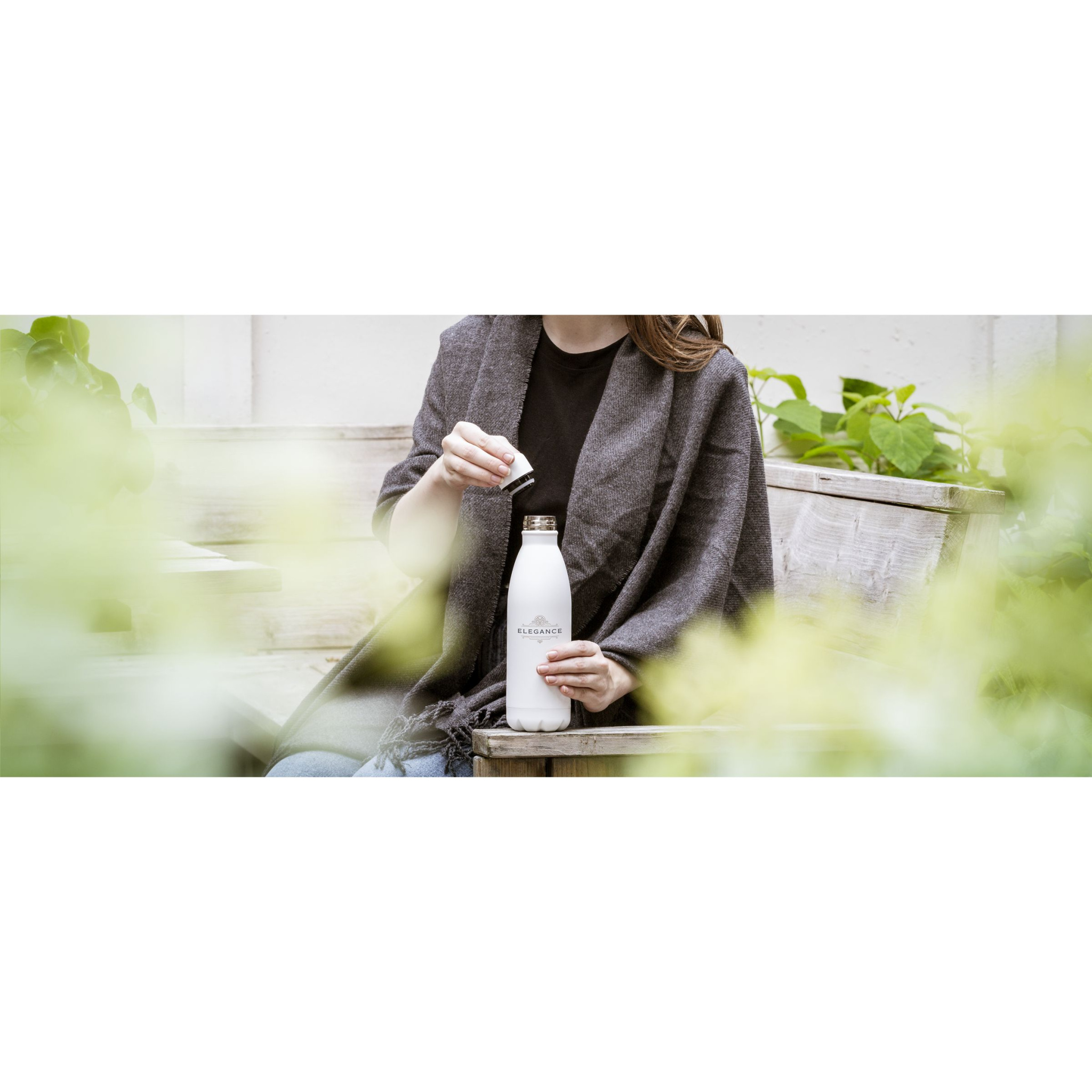 WoW! Dubbelväggig, läcksäker vatten/termosflaska tillverkad av återvunnet rostfritt stål. Levereras i en modern matt finish med matchande skruvlock, denna flaska har ett slående utseende. Denna smala flaska passar mugghållare i ett brett utbud av bilar och är den perfekta törstsläckaren när du är på språng. RCS-certifierad. Totalt återvunnet material: 85 %. Kapacitet 500 ml. Rostfritt stål kan återvinnas många gånger med bibehållen kvalitet på materialet. Genom att använda återvunnet rostfritt stål behövs färre nya råvaror. Det innebär mindre energiförbrukning och mindre användning av vatten. Ett ansvarsfullt val. Varje artikel levereras i en individuell brun kartong.