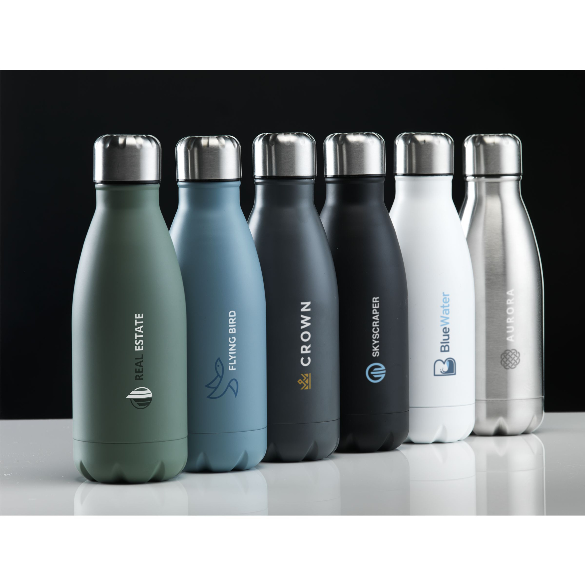 Enkelväggig vattenflaska i rostfritt stål med läckagesäker skruvlock. Kapacitet 500 ml. Varje föremål är individuellt förpackad.