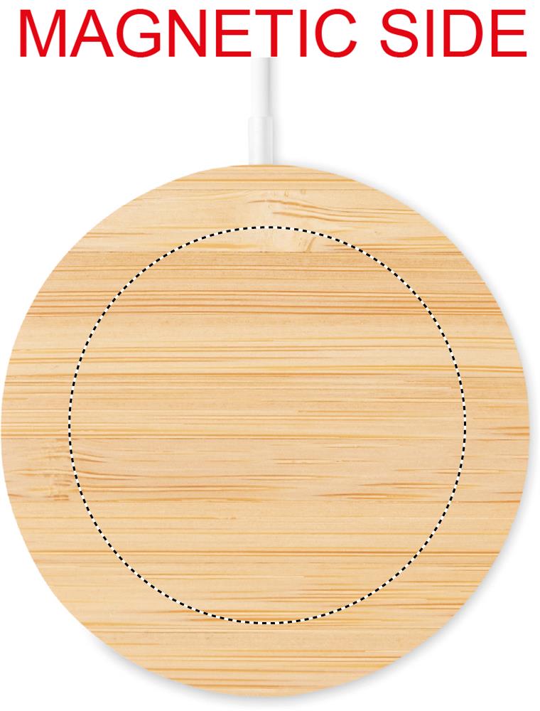 Magnetisk trådlös laddare av bambu. Ladda din smartphone trådlöst med denna laddningsplatta. Eftersom den har en magnet inuti kommer din telefon att kunna fästa mot den, även när du använder din telefon. Bra när du vill ladda din mobila enhet, men också vill ringa eller titta på en video. Denna laddare innehåller en extra magnetisk metallring för att stödja laddning av icke-magnetiska trådlösa laddningsbara telefoner. Kompatibel med iPhone® 12 och nyare. Utgång: DC 9V / 1.1A (10W) för snabb laddning. Bambu ger denna laddare ett mer naturligt och elegant utseende. Bambu är ett naturligt material och det kan finnas små variationer i färg och storlek per artikel, vilket kan påverka det slutliga märkresultatet.