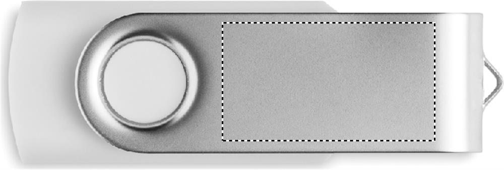 16 GB 2.0 USB-minne med skyddande hölje av återvunnen ABS i vit finish. Vrid om locket och anslut till USB-porten för att börja använda den.