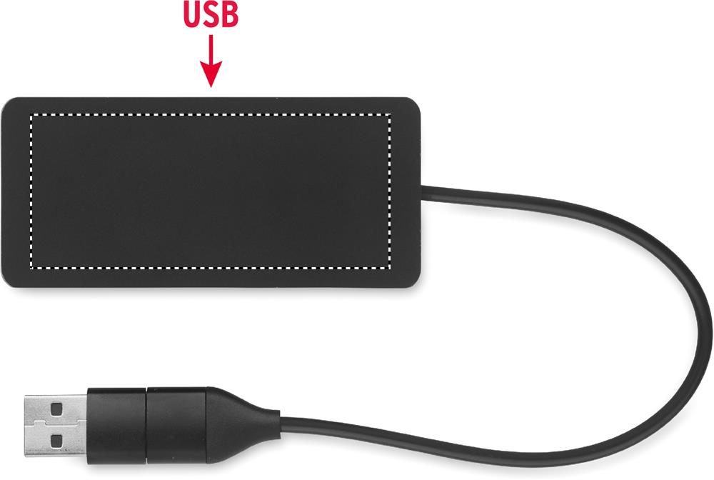 USB hub/Laddkabel i återvunnen aluminium. Utgång: 2 x Type-A och 1 x Type-C. Ingång: 2-i-1 Typ-C and Type-A. Kabellängd: 20 cm.
