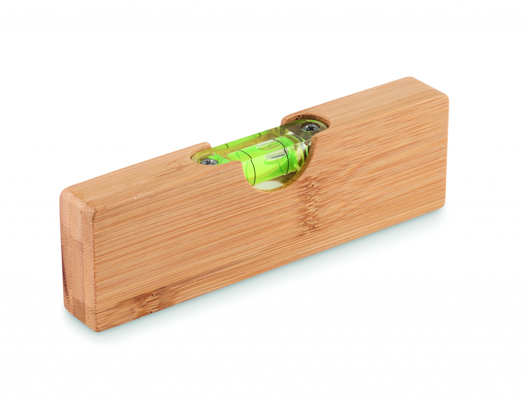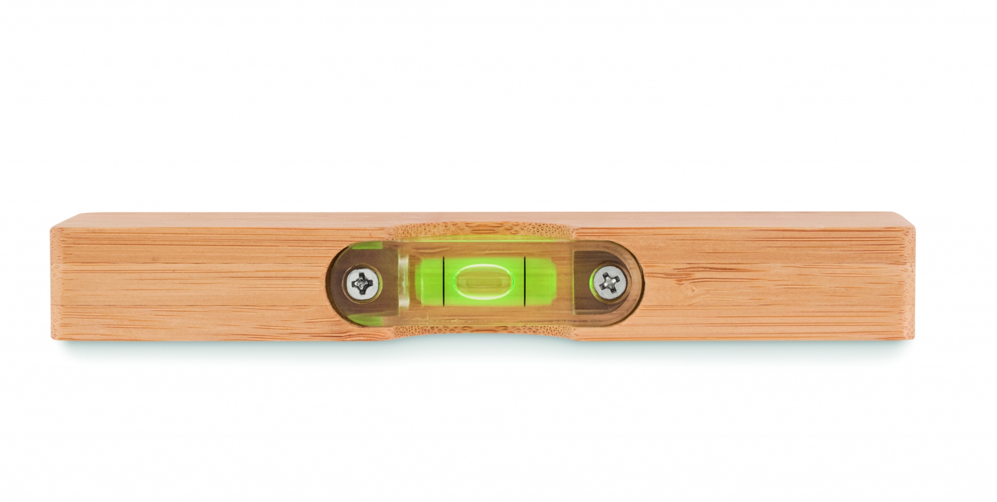 Vattenpass i bambu med inbyggd flasköppnare.