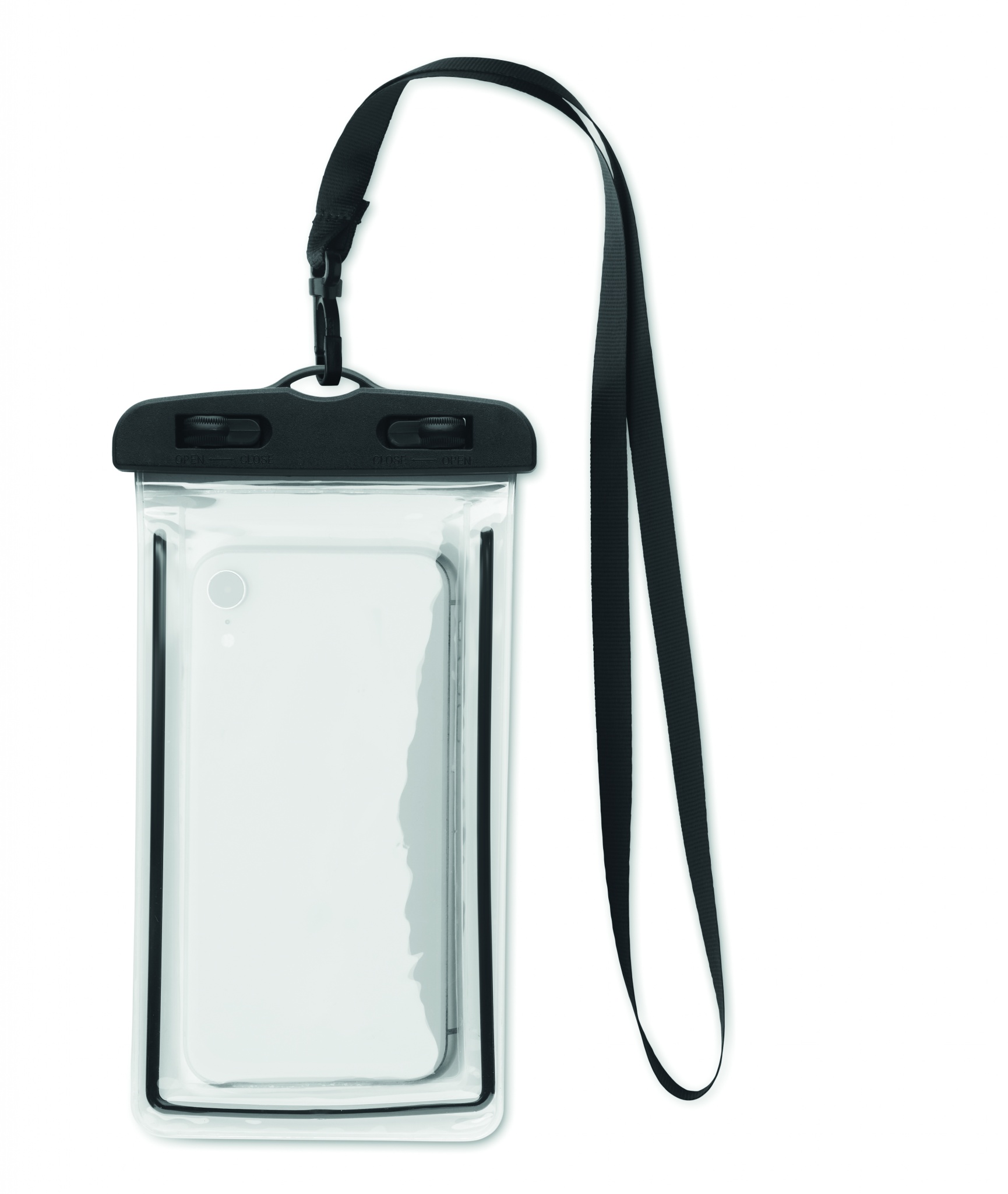Vattentät telefonväska med justerbart och löstagbart nyckelband. Vattentät klassning: IPX 6. Passar telefoner med upp till 6,7 tums skärm.